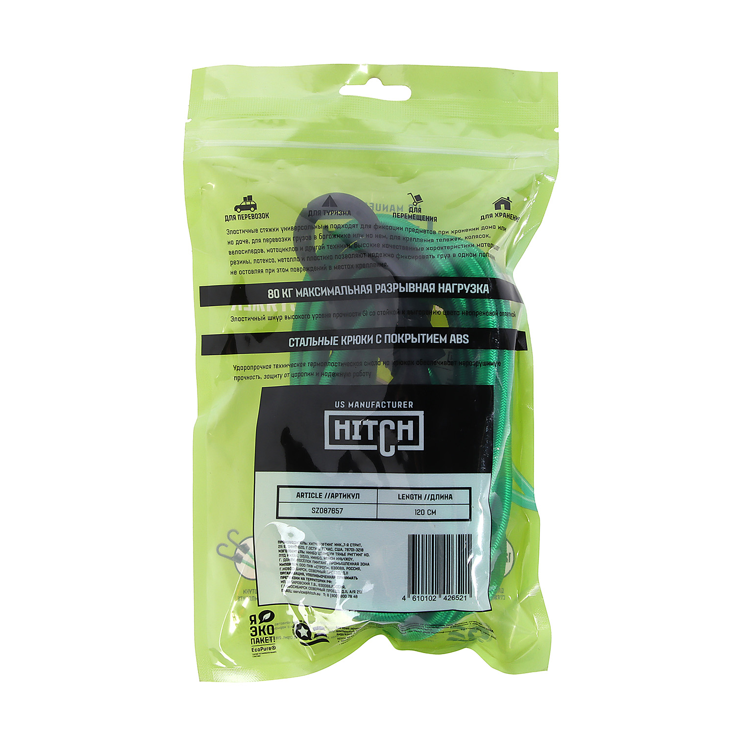 Стяжка эластичная 120см, d8мм, 2шт, резина,латекс, крюк.пласт, сердц.сталь арт.SZ087657 Hitch Regular *1/50