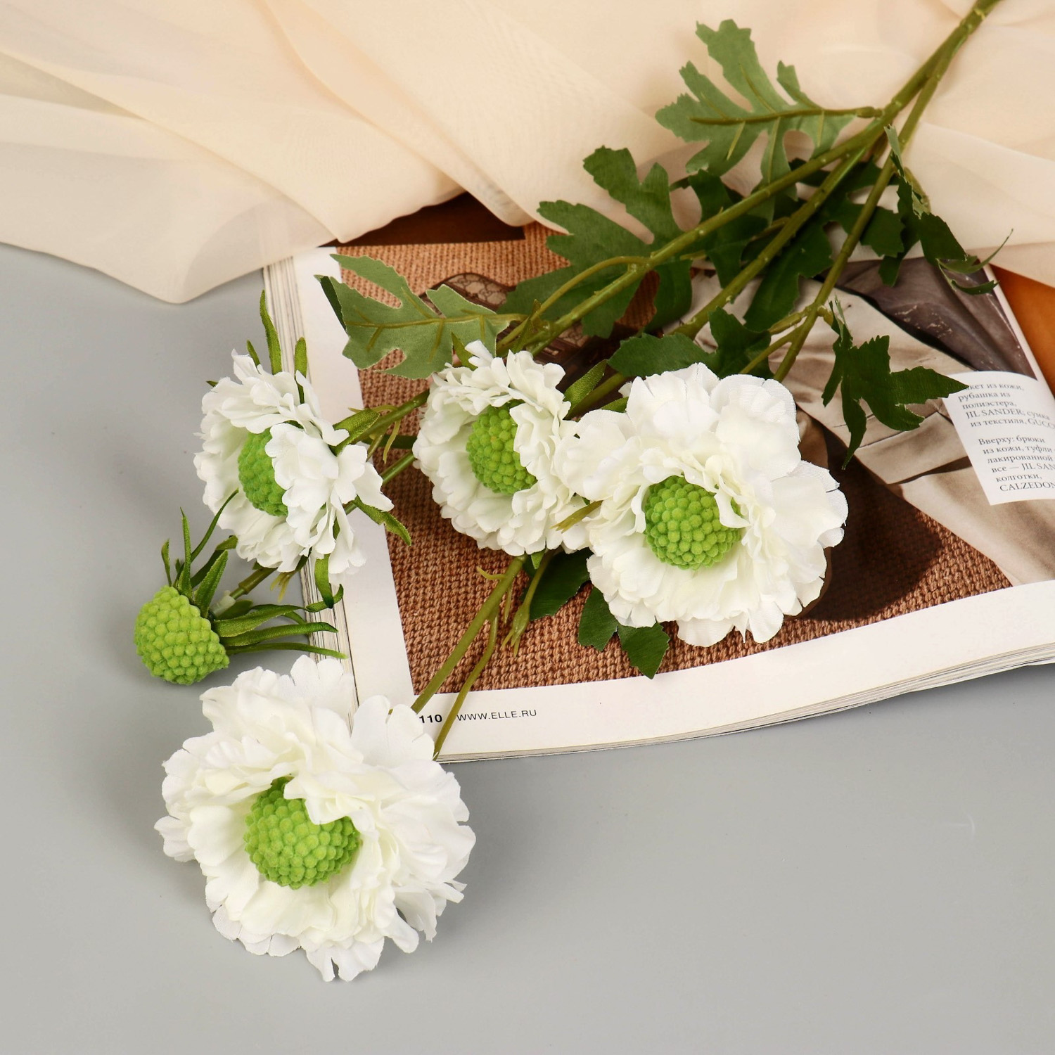 Цветы искусственные "Махровый гибискус" 82 см, белый 7510214