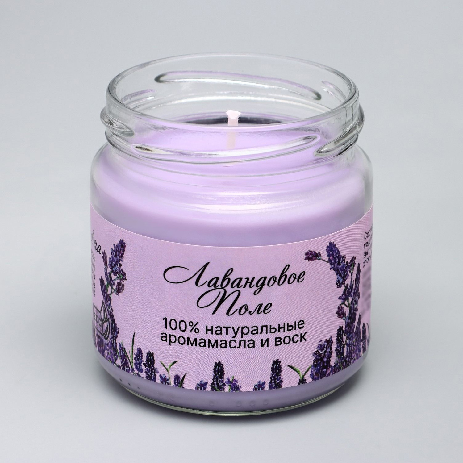 Натуральная эко свеча из пальмового воска, "Лавандовое поле", сиреневая, 7х7,5 см, 14 ч 6766590