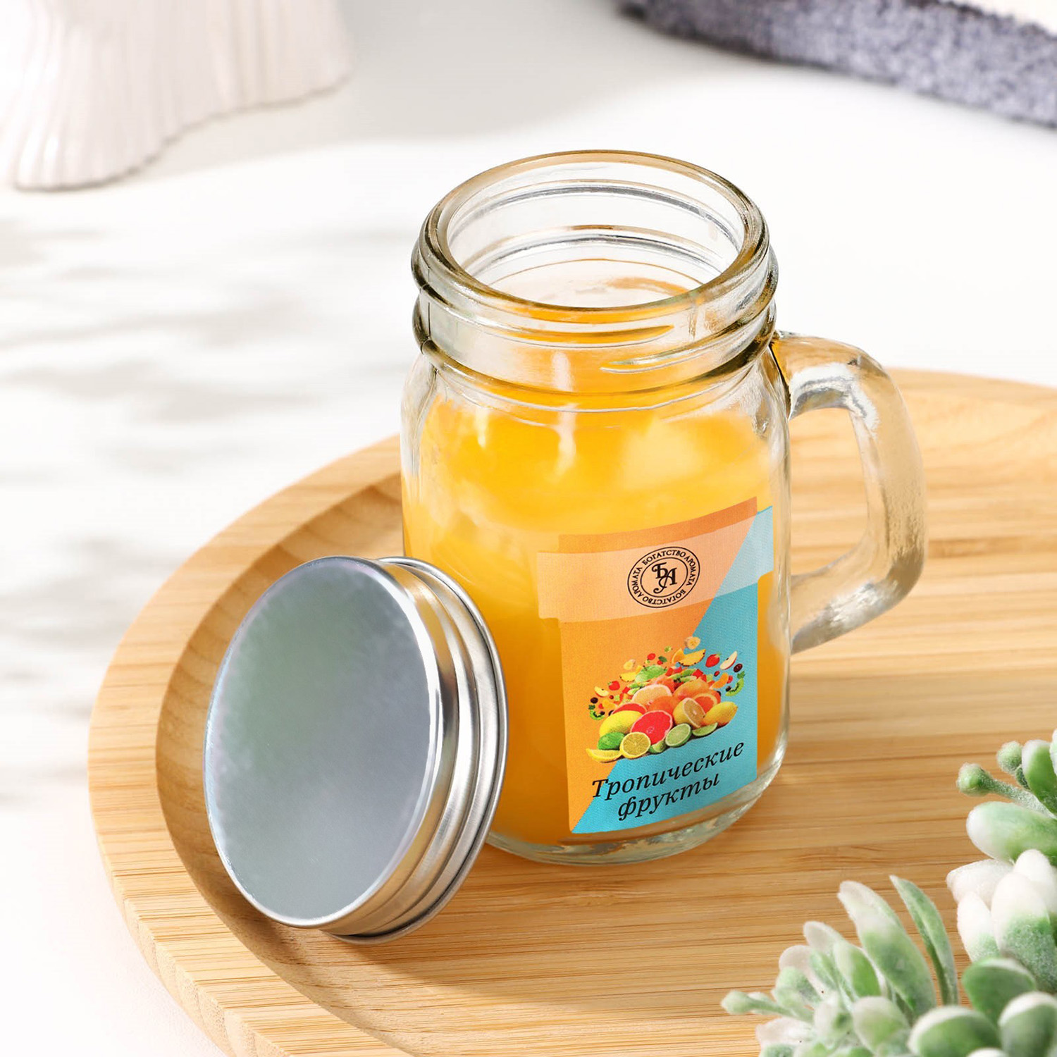 Свеча ароматическая в банке "Тропические фрукты", 7,2 х 8,5 см, 190 г   9485661