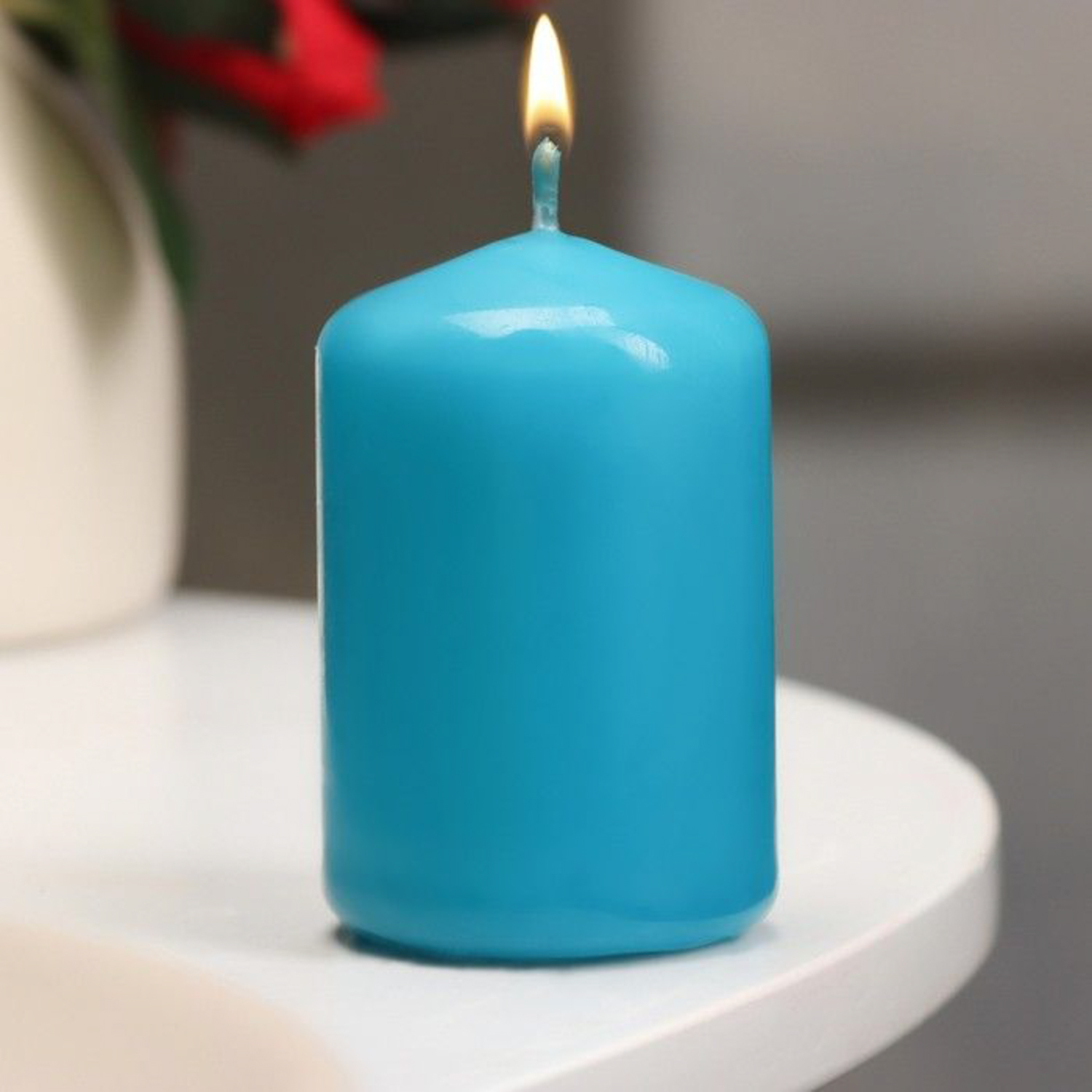 Свеча- цилиндр, парафиновая, бирюза, 4×6 см 4205479
