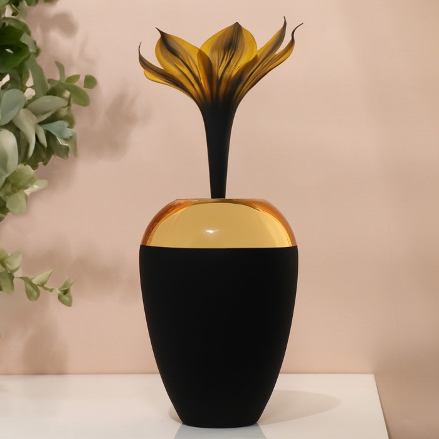 Ваза «Богемия Голд» из черного стекла, 22 х 20 х 20 см
