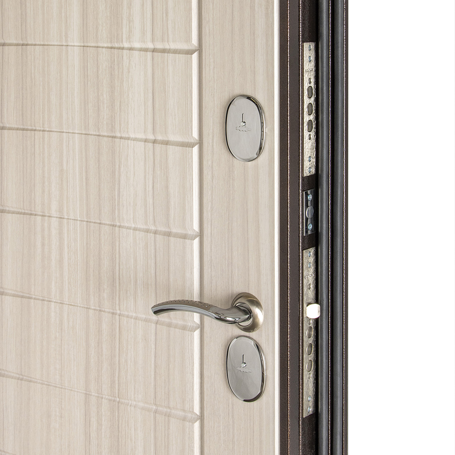 Дверное полотно, замок основной, замок дополнительный, петли, противосьемные ригели - 2 шт., накладк |
