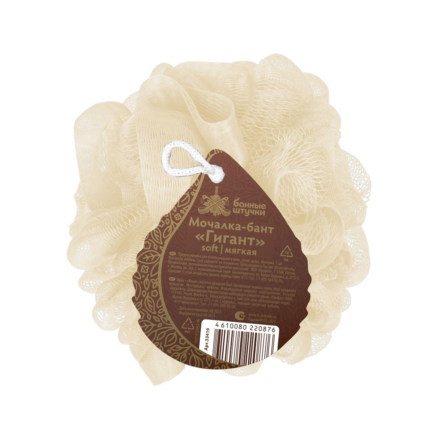 Мочалка-бант для душа "Гигант", d-15 см, 80 г, soft, 2 цвета (жемчужный, пудровый), для бани и саун