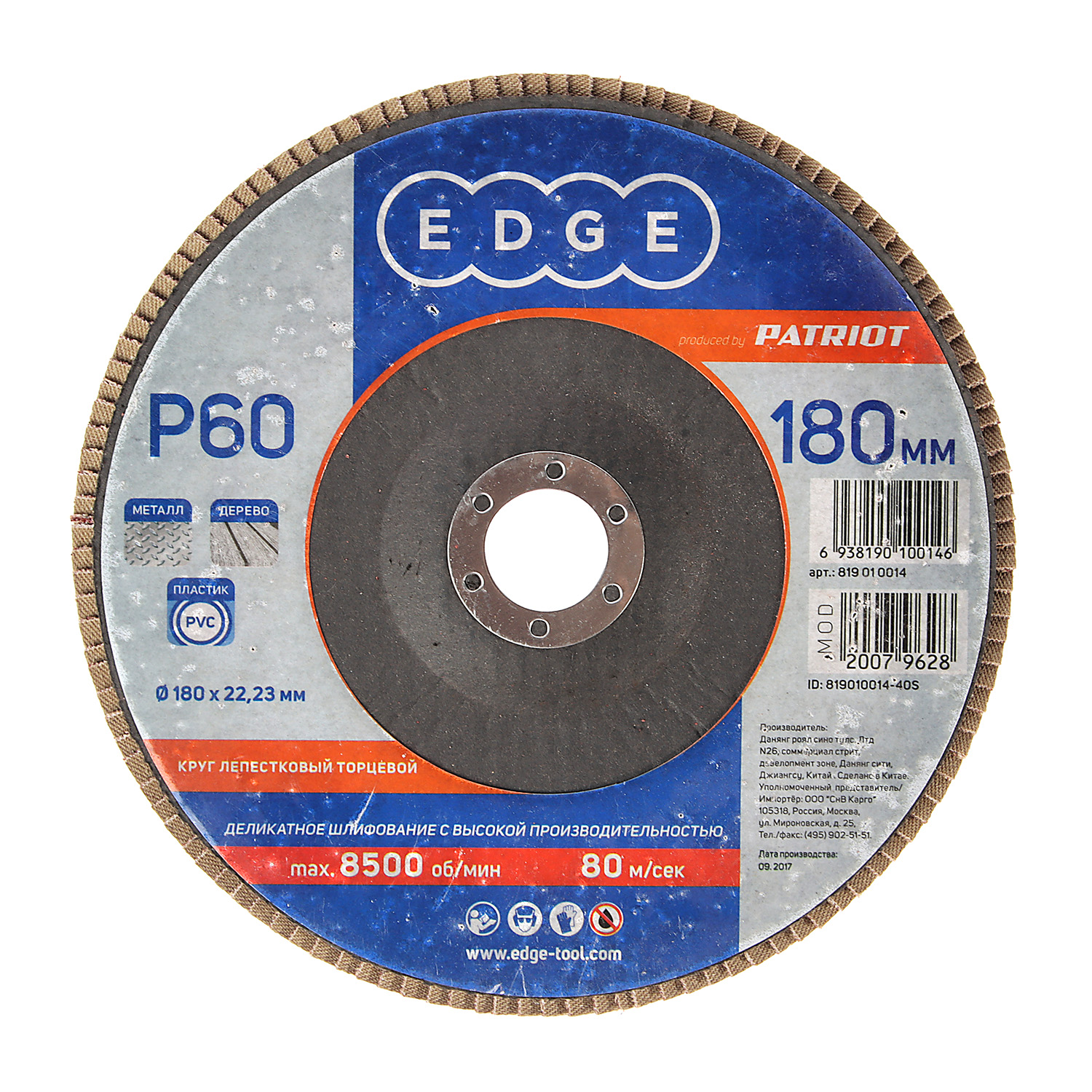 Круг шлифовальный лепестковый торцевой 180*22мм зерно А60 ЛУГА *10