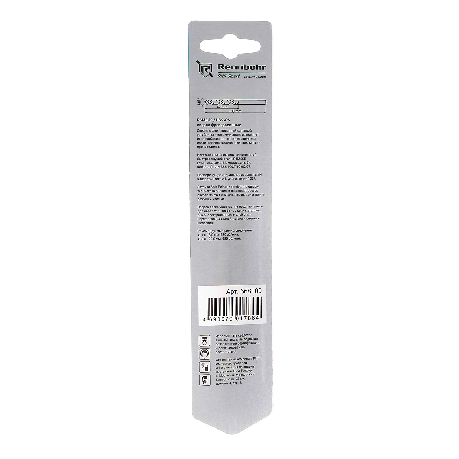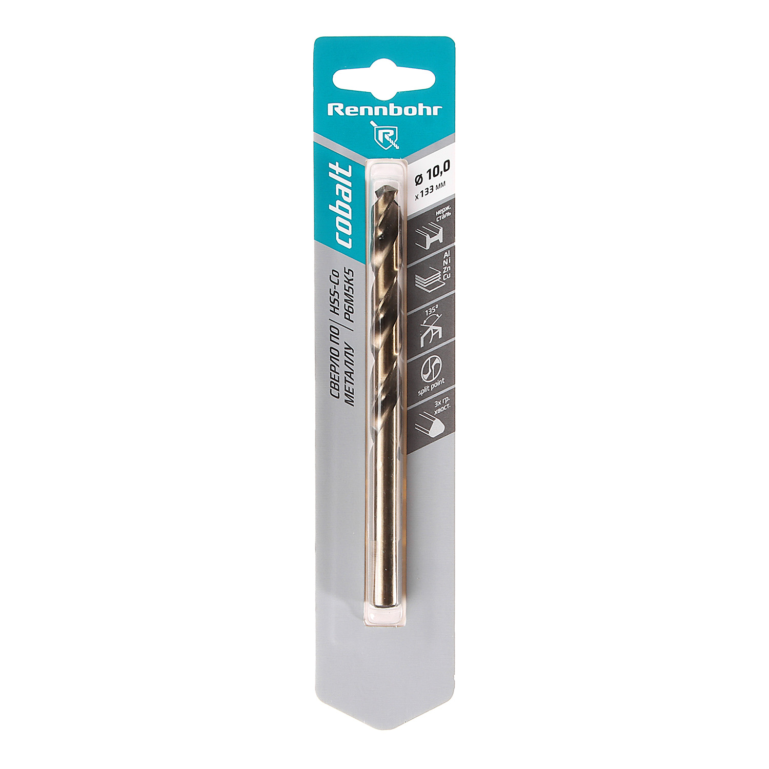 Сверло по металлу10,00*133/87мм HSS-Co P6M5К5 (1шт) блистер арт.668100 COBALT RENNBOHR *6/32/192
