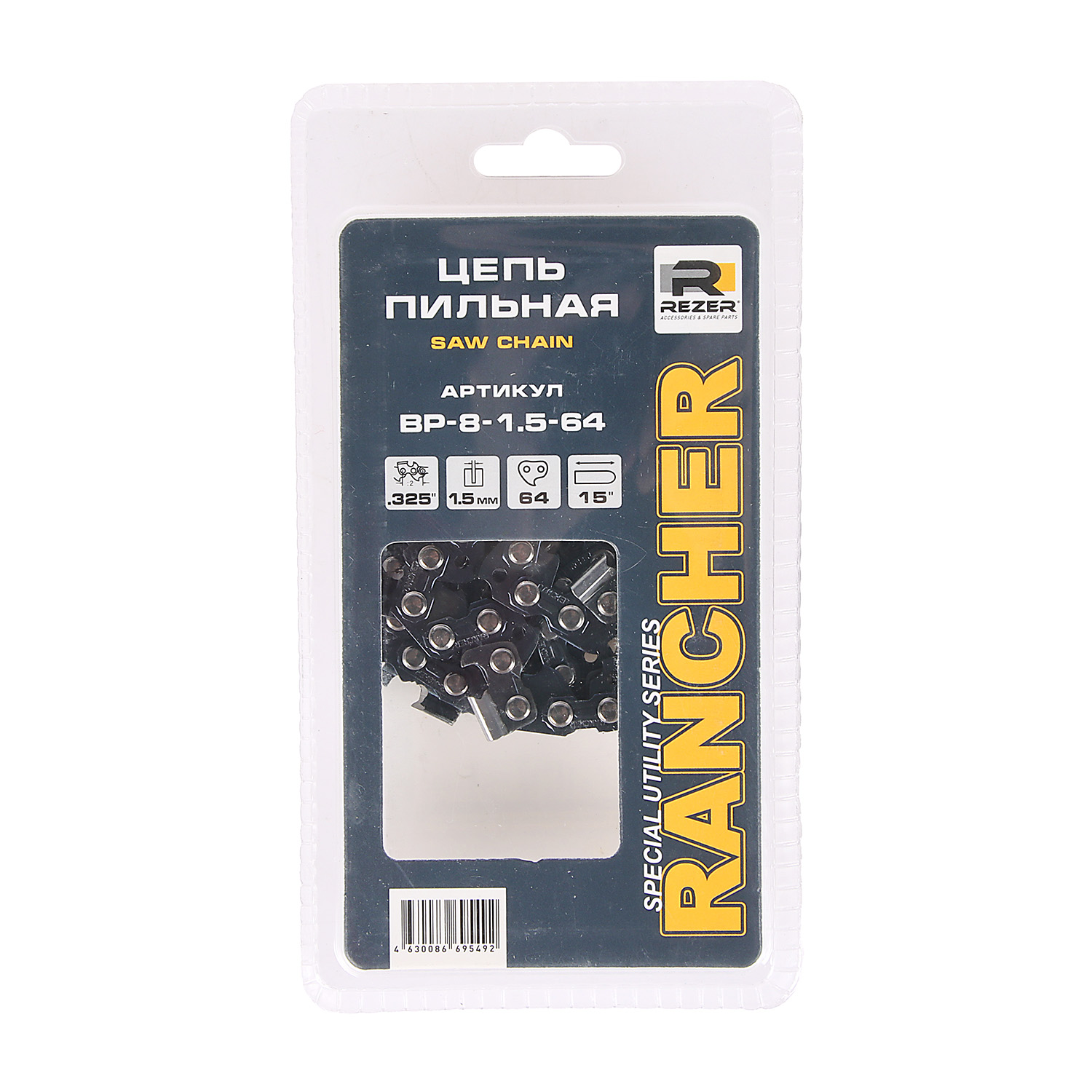 Цепь пильная шина38см 64звеньев шаг0,325" паз1,5мм Rancher BP-8-1.5-64 REZER *1/10/60