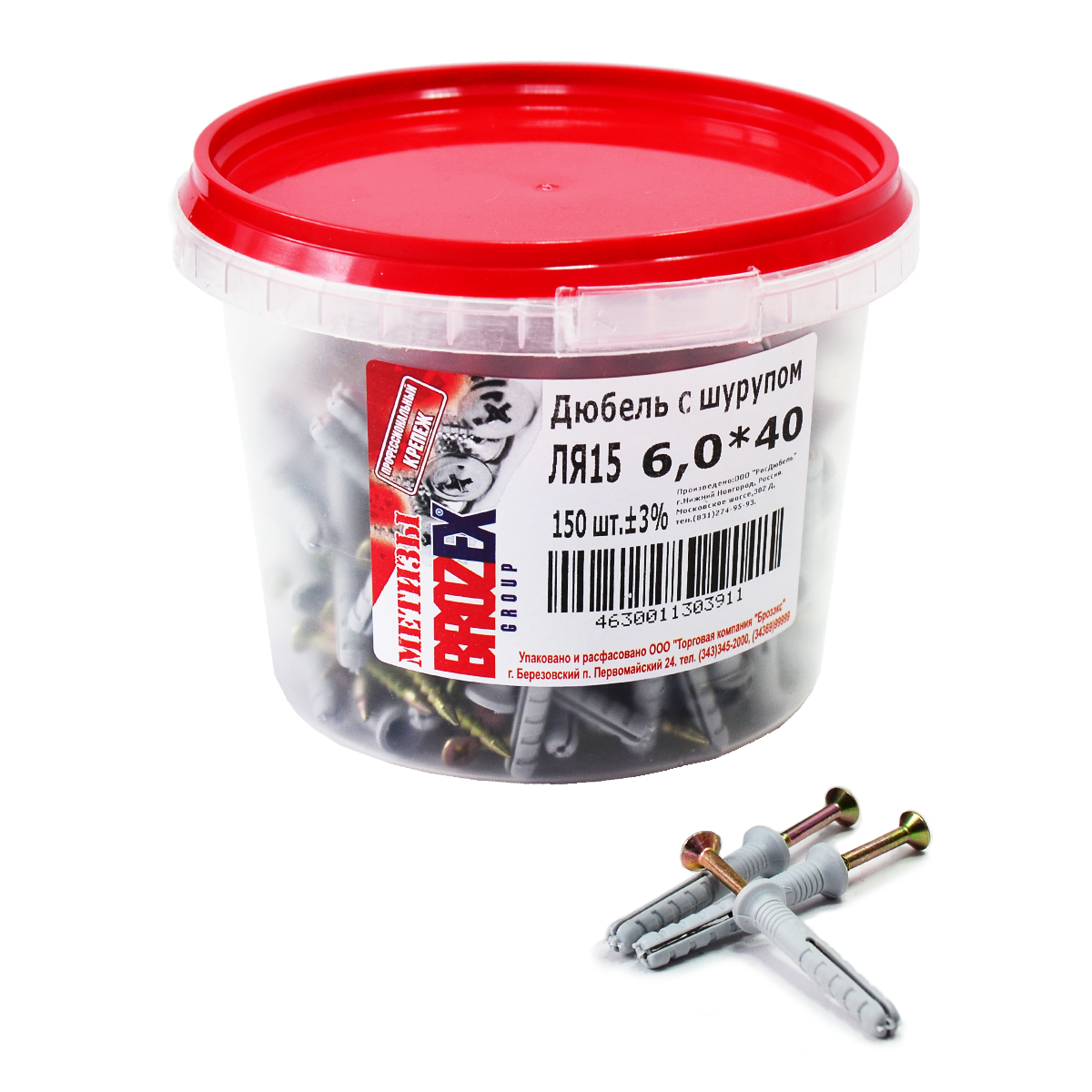Дюбель с шурупом BROZEX, 6х40 мм, 150 шт.