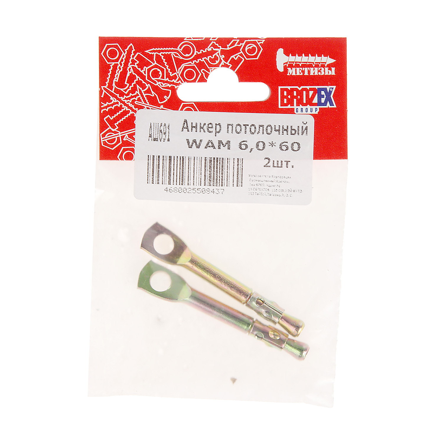 Анкер потолочный 6х60 WAM (2шт) пакет BROZEX *10/100