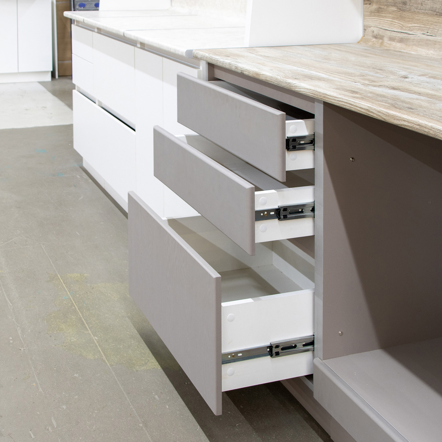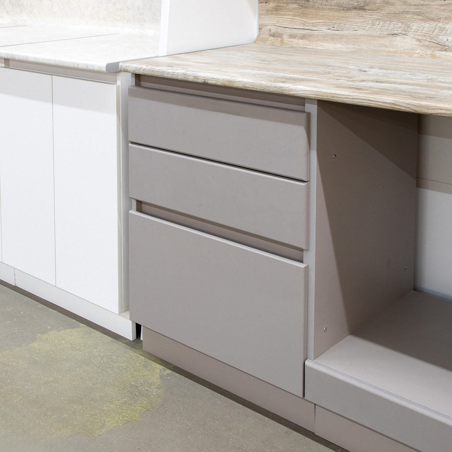 Шкаф напольный 600х850х600 мм BROZEX-WOOD Эрика, с тремя ящиками, грейдж / ясень грей софт