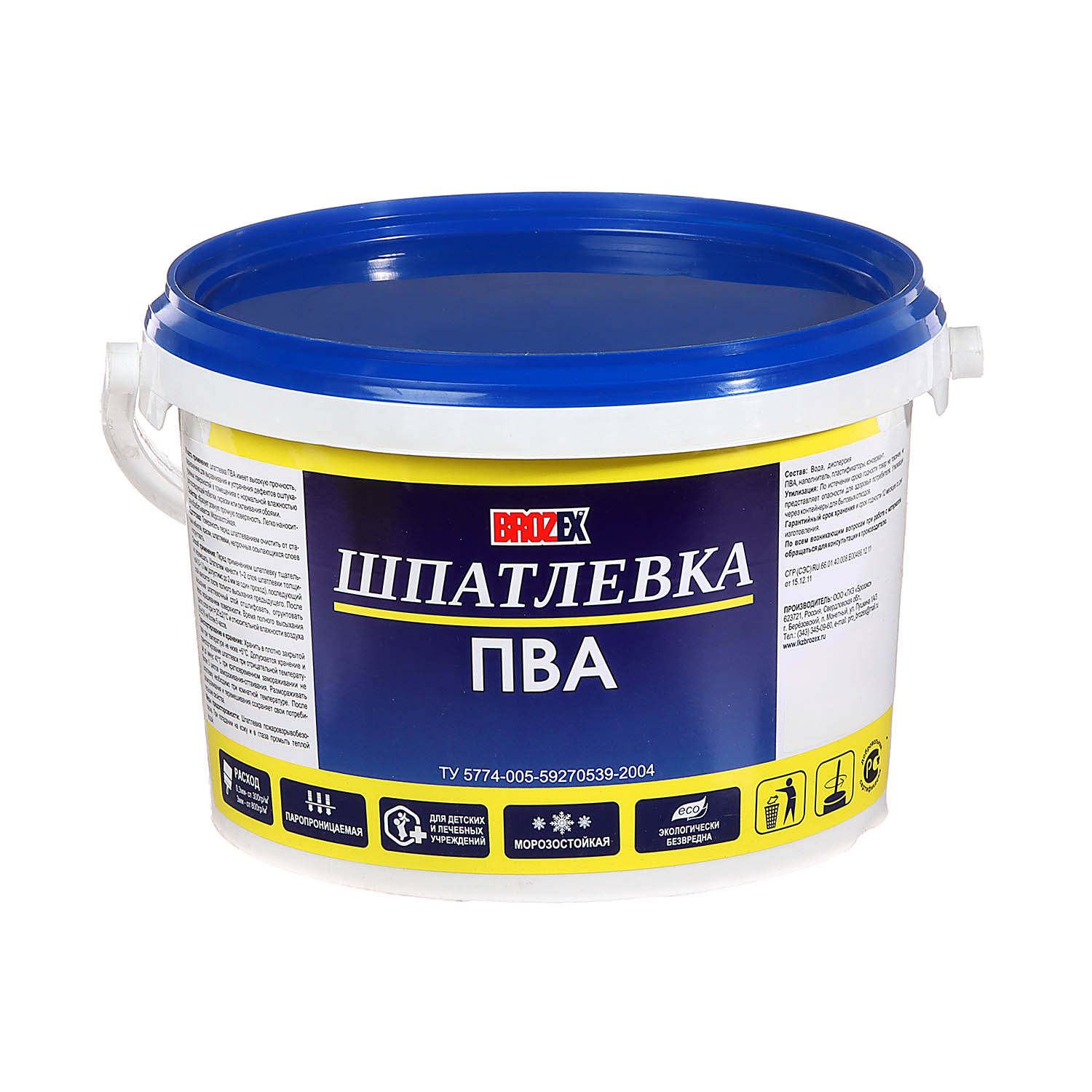 Шпатлевка ПВА BROZEX 5 кг обладает высокой прочностью, образует ровную износостойкую поверхность. Проста в нанесении и обработке.