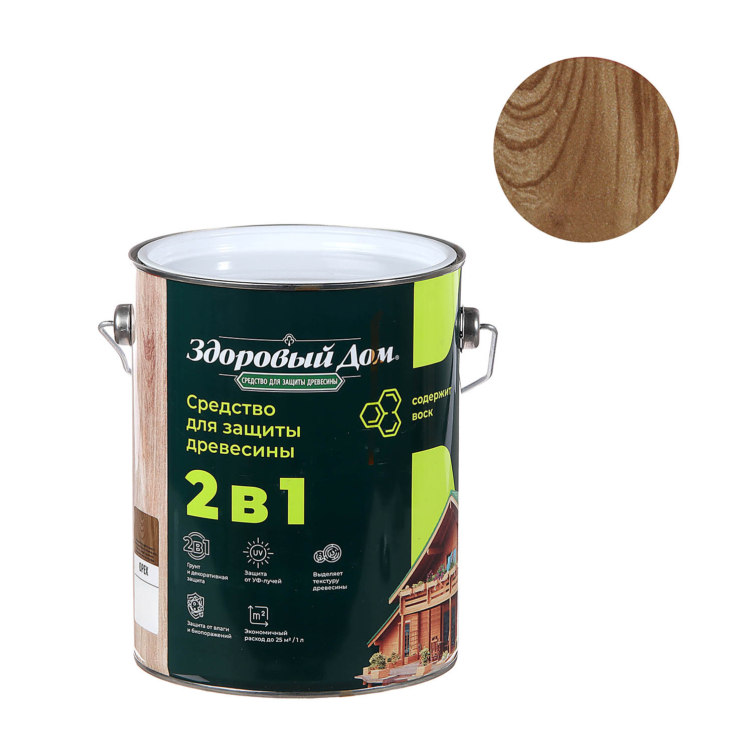 Деревозащитное средство Здоровый дом 2 в 1 орех 2.7 л представляет собой высокоэффективное покрытие для декоративной отделки древесины и защиты поверхностей на срок до 8 лет. Формула 2 в 1 позволяет наносить состав без предварительного использования грунта.