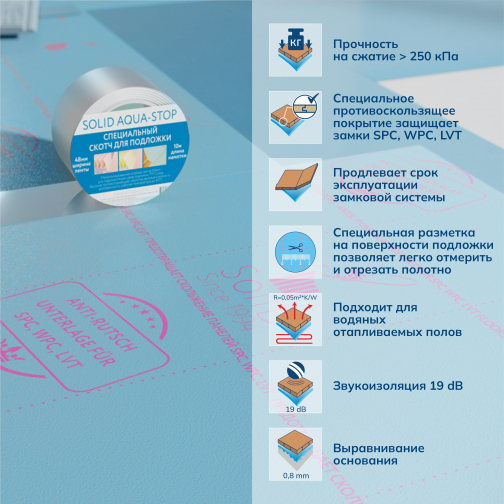 Используется как основание перед укладкой ламината или паркетной доски, а также при монтаже теплого пола.