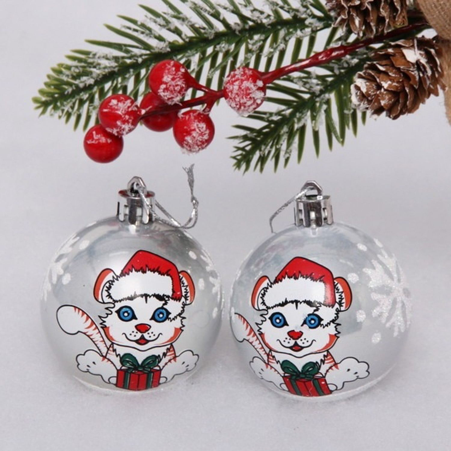 Новогодние шары "Тигрёнок" 6 см (набор 2шт), серебро