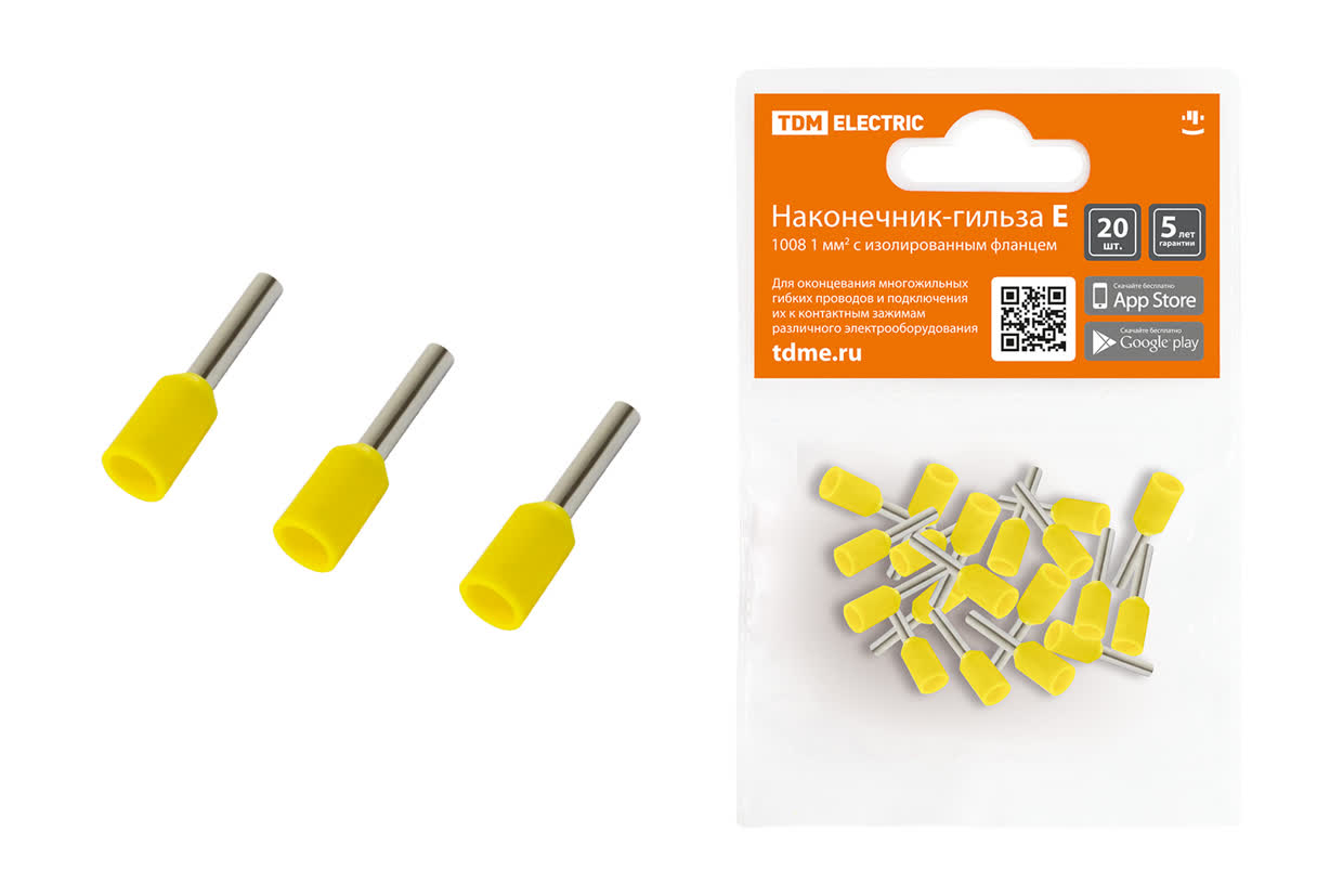 Наконечник-гильза Е1008 1мм2 с изолир. фланцем (20шт) TDM SQ0568-0038 *1/50