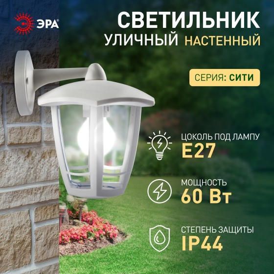 Светильник садово-парковый НБУ "Дели 3" Е27 шестигранный настенный белый ЭРА Б0051198 *1/8