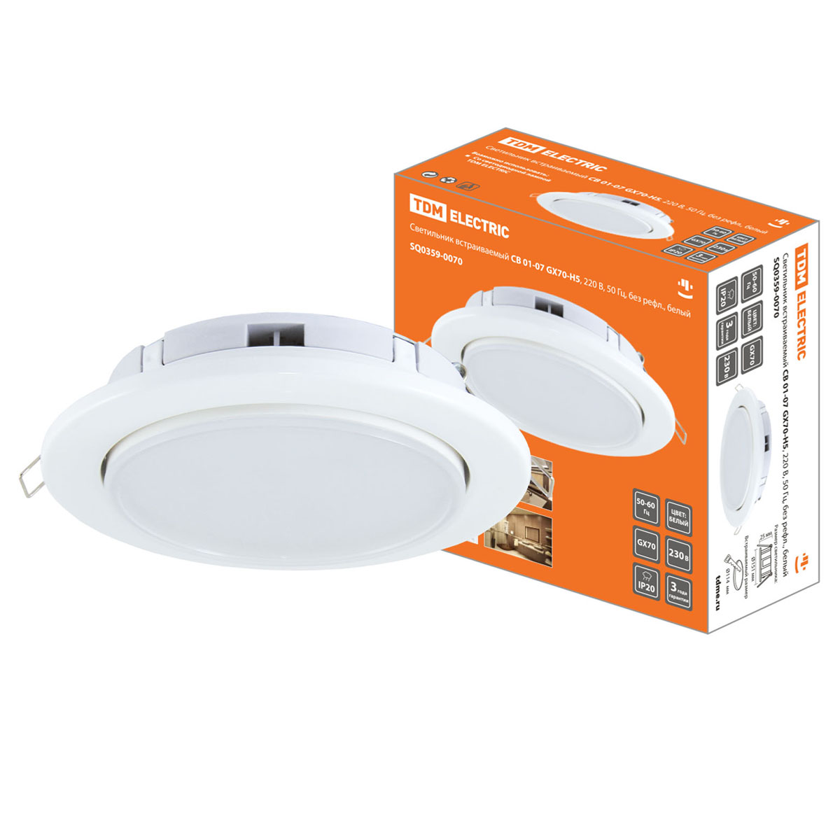 Светильник встраиваемый СВ 01-07 GX70-H5 220В белый TDM SQ0359-0070 *1/25