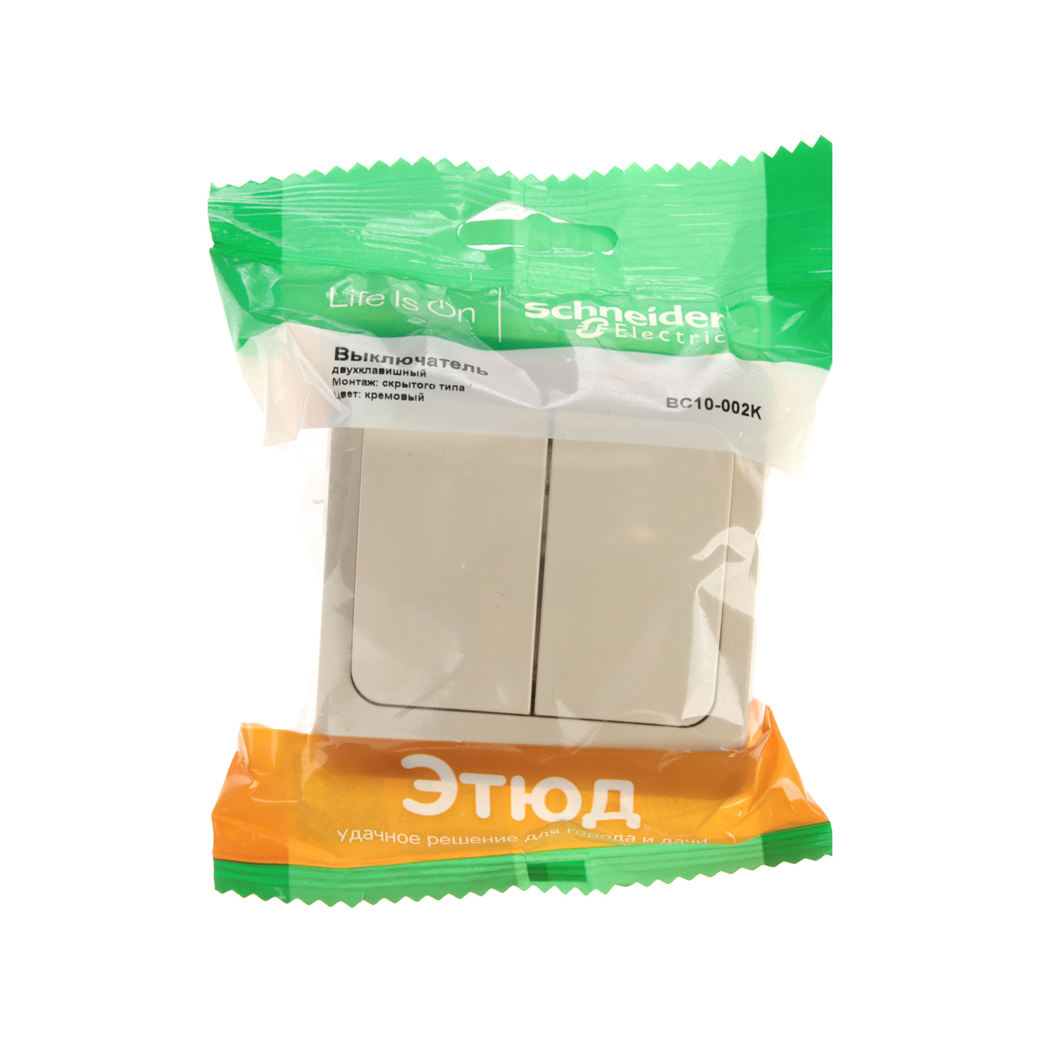 Выключатель Schneider Electric ЭТЮД (кремовый, скрытой установки) двухклавишный предназначен для применения в сетях до 250В, на ток до 10А. Две клавиши позволяют управлять двумя источниками света с одной точки. Он прост в установке и удобен применении. Сделано в России.
