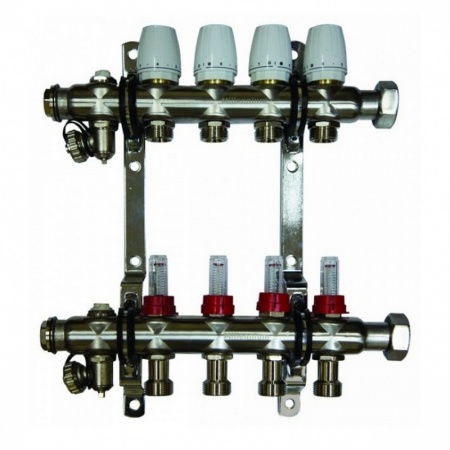 Коллектор СТМ, 4 выхода, с регулировочными вентилями, 3/4"х1/2"