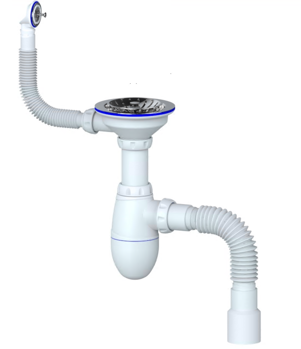 Сифон бутылочный 3 1/2"*40 с гибким гофрир. переливом (кругл.), с гофрой Unicorn В426 *1/30/120