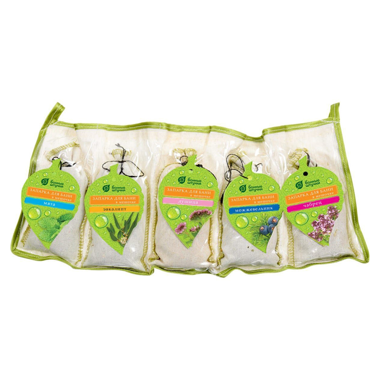 Набор запарок д/бани в сумочке 5шт. (мята, эвк, можжев.,чабрец, душица)  "Банные штучки"*1(для розн)