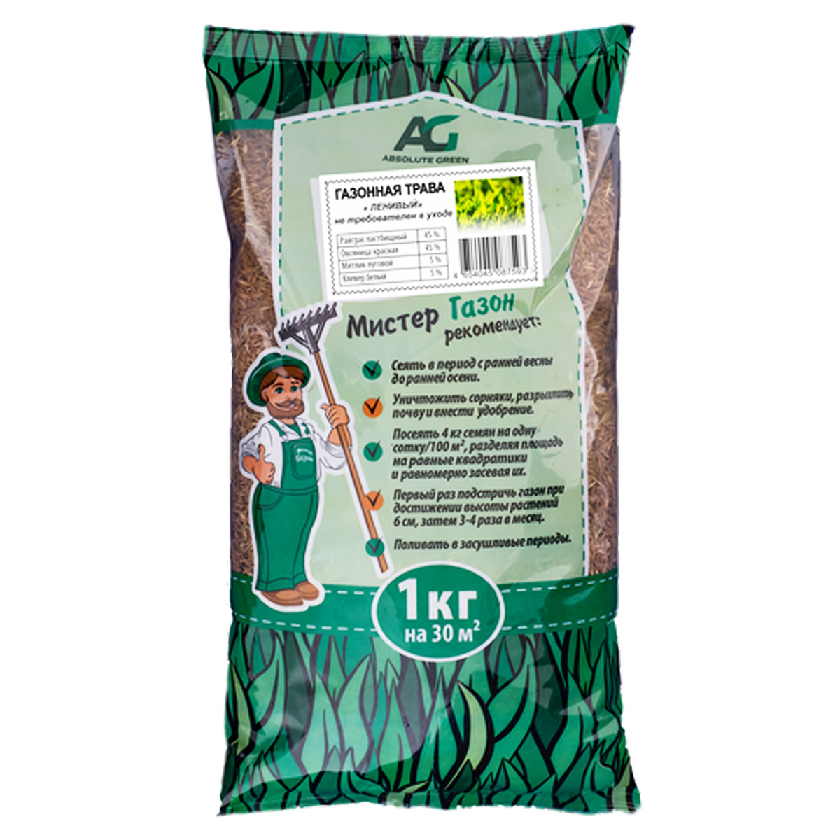 Газонная травосмесь Ленивый 1кг Абсолют *5/10
