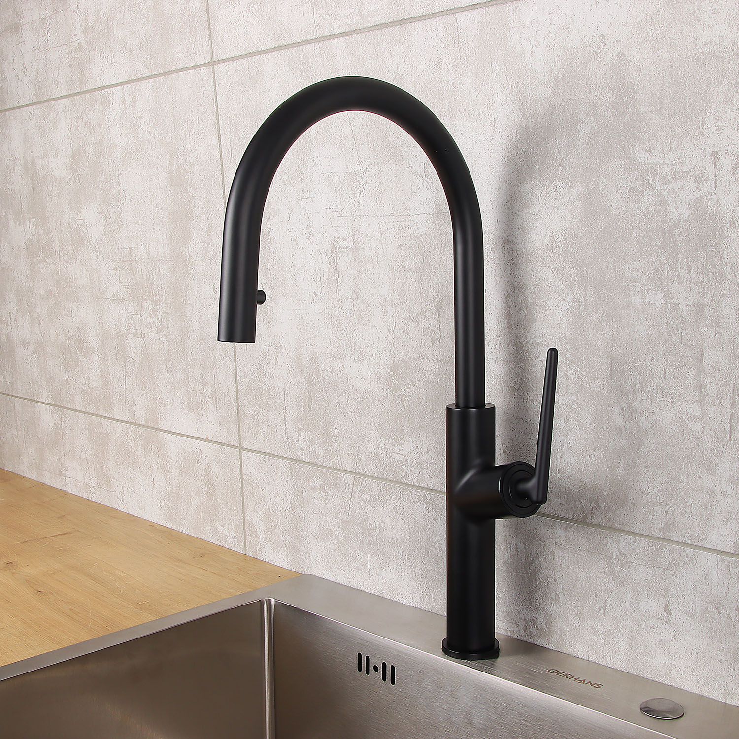 Смеситель для кухни Diadonna D60-0008BL высокий излив, выдвижная лейка, черный *1/6
