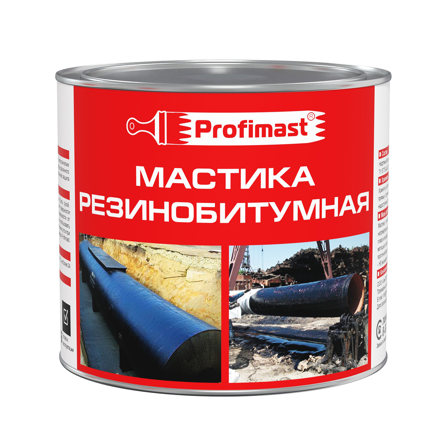 Мастика резинобитумная Profimast 2 л — продукт на основе высококачественного изоляционного битума. Содержит мелкодисперсную резиновую крошку, органический растворитель, пластификатор, наполнитель, ингибитор коррозии и антисептик.