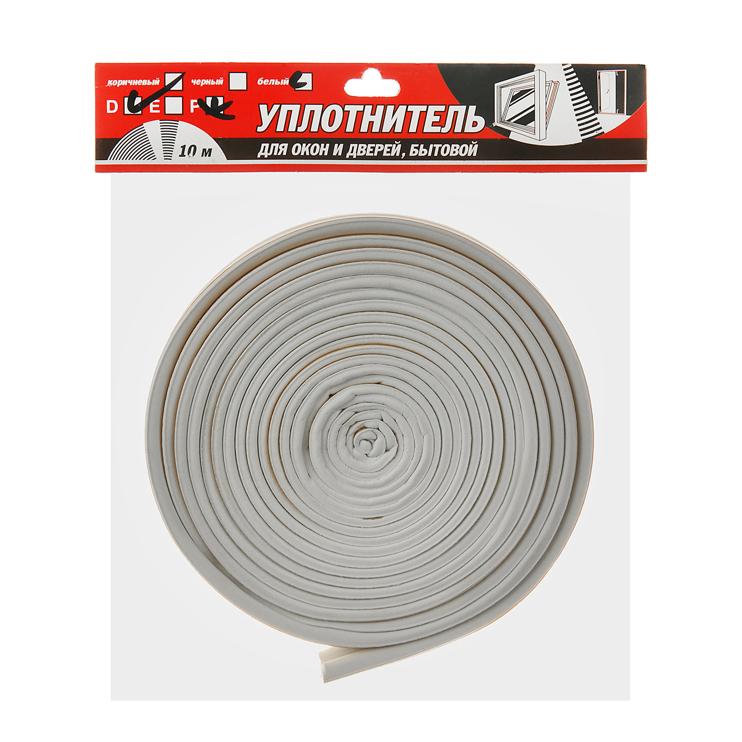 Уплотнитель 10 м TYTAN, 9х7.5 мм, для окон и дверей, профиль D, белый