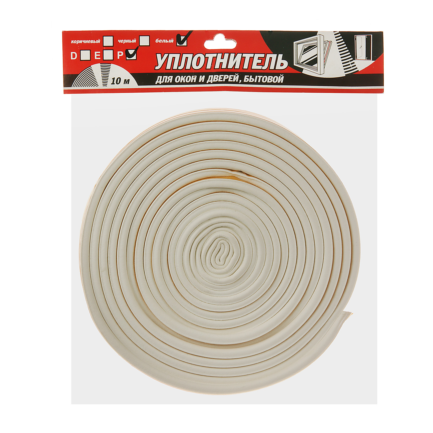 Уплотнитель 10 м TYTAN, 9х5.5 мм, для окон и дверей, профиль P, белый