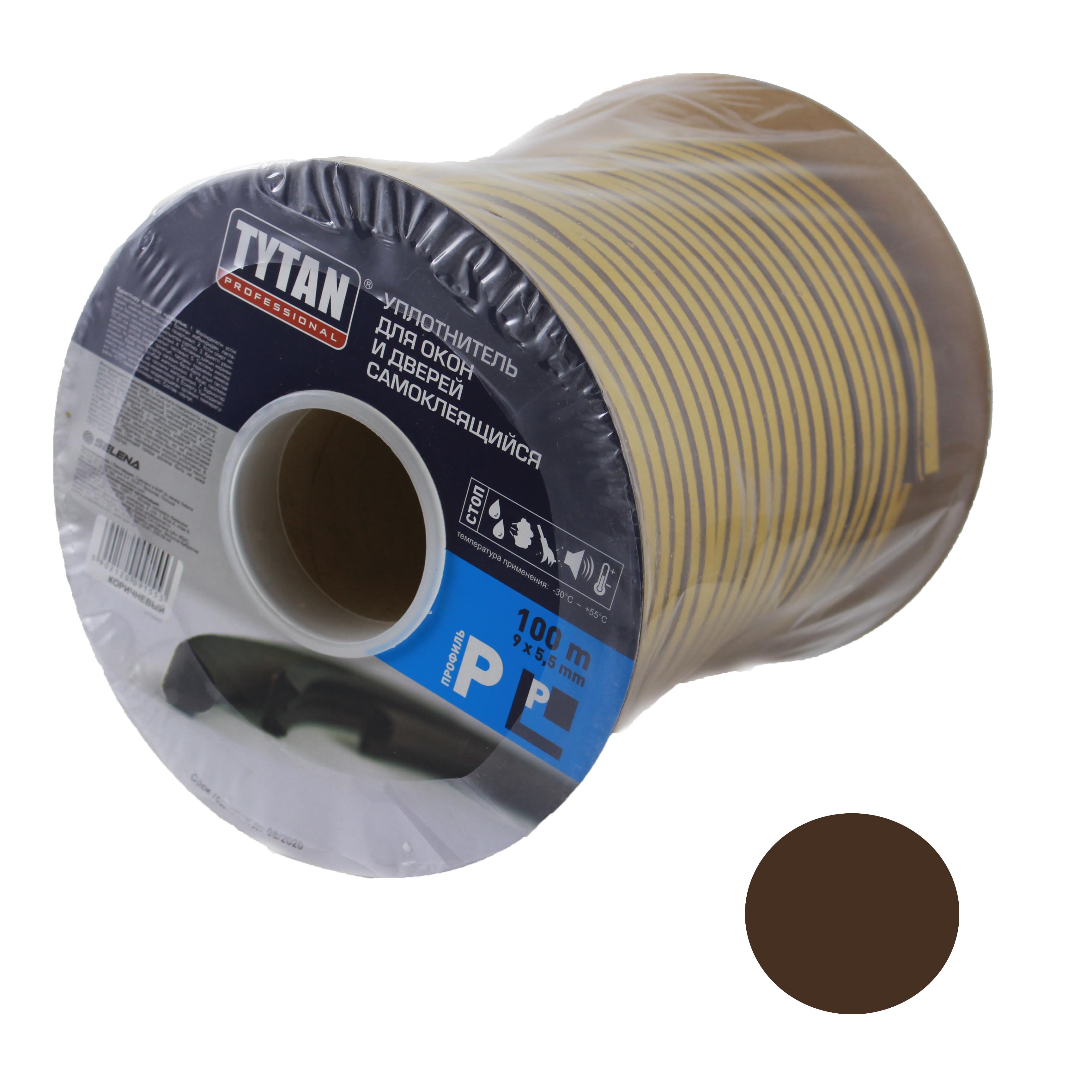 Уплотнитель 10 м TYTAN, 9х5.5 мм, для окон и дверей, профиль P, черный