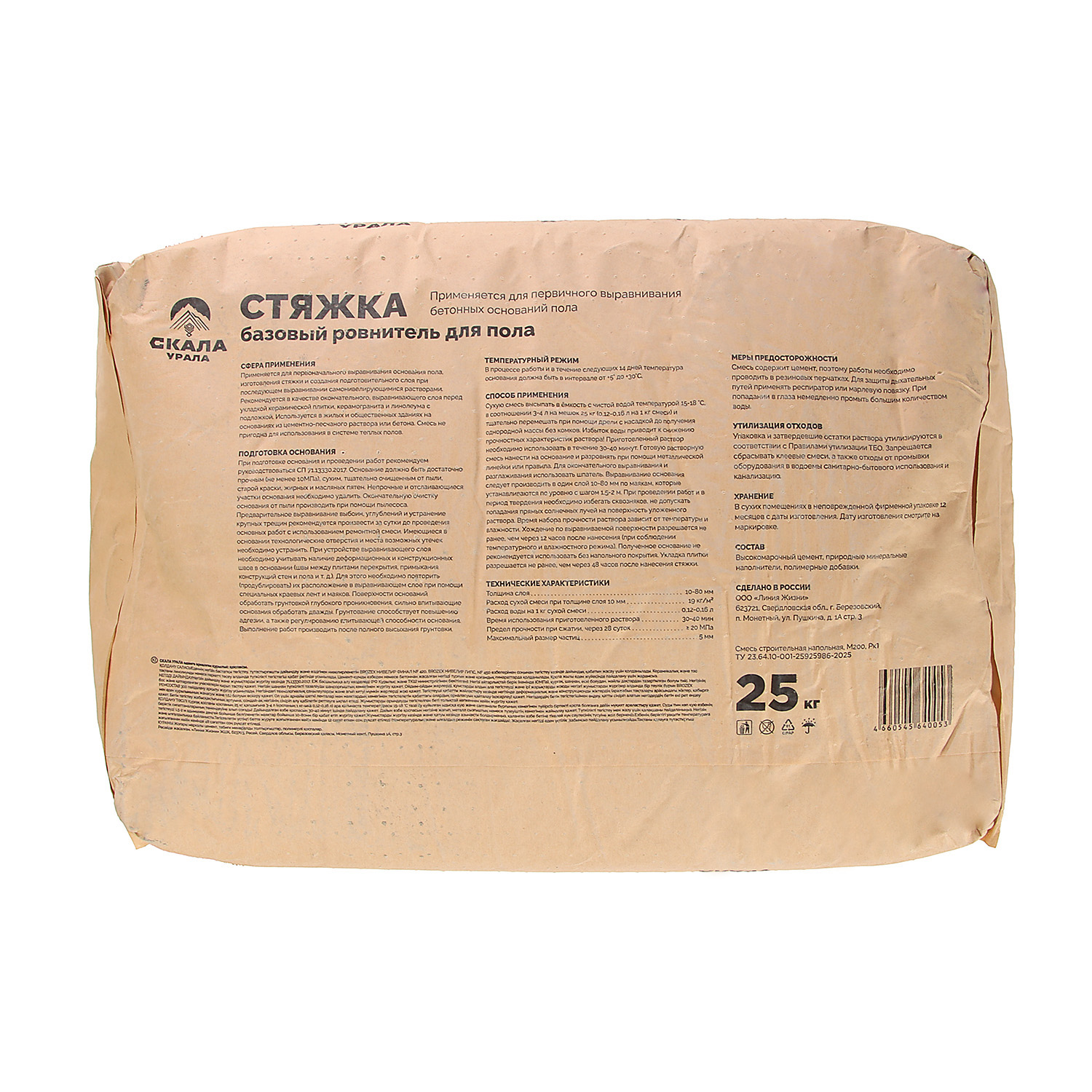 шт кгСтяжка "Скала Урала" базовый ровнитель применяется для первичного выравнивания бетонных оснований пола в жилых и общественных зданиях.