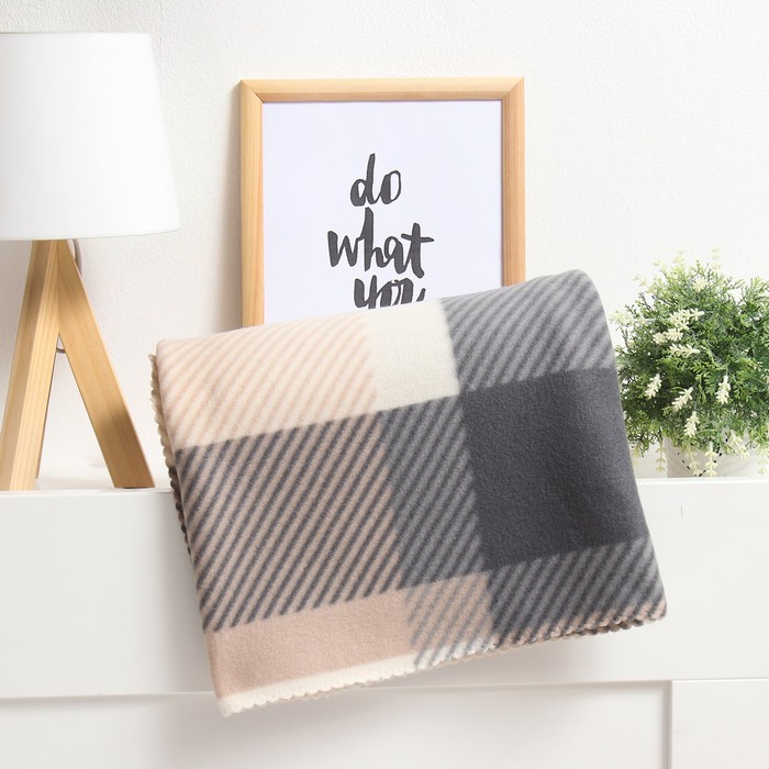Плед 130*150см флисовый Клетка бежевый Экономь и Я *1/12