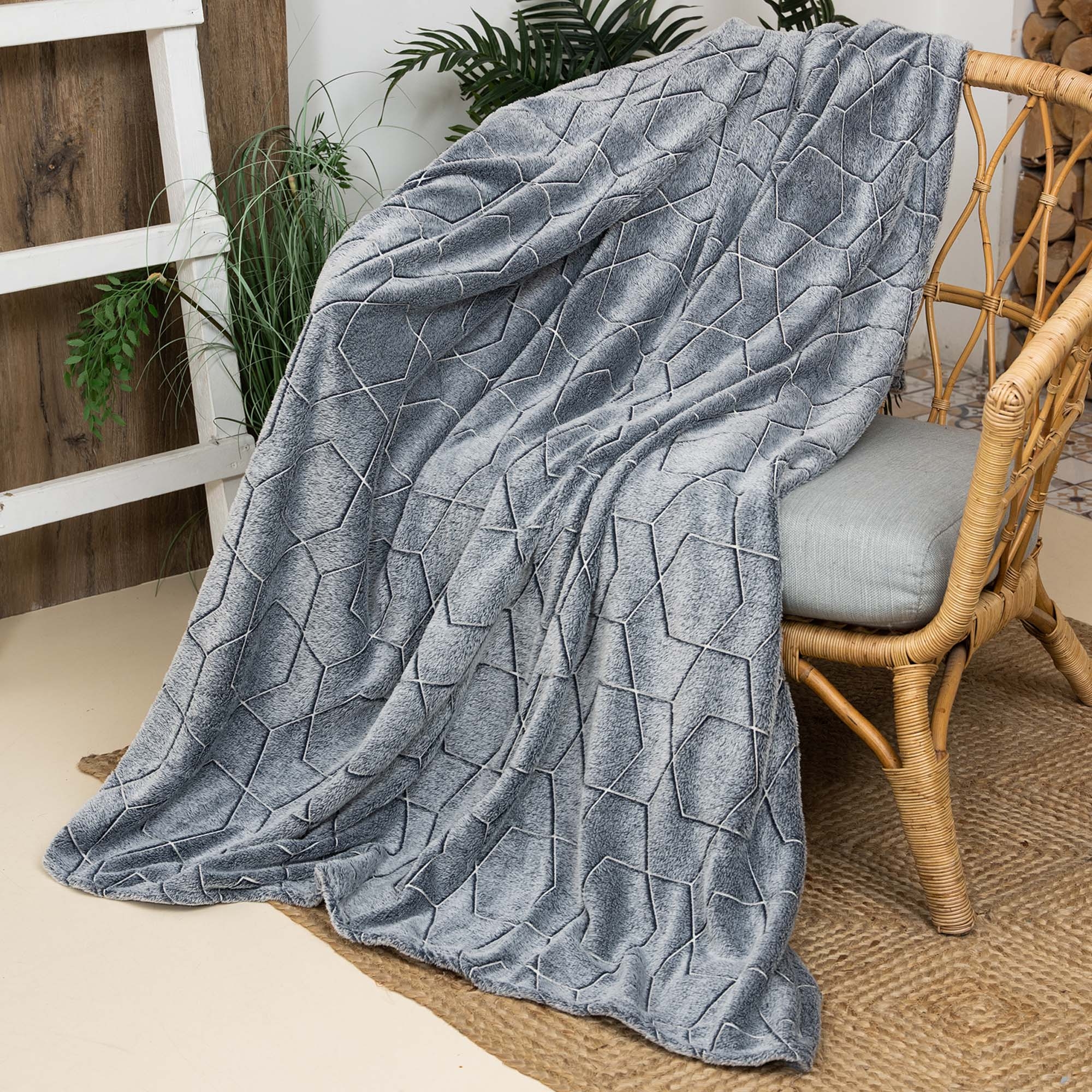 Плед 150*200см фланель Stella Geometry темно-синий светящийся Casa Conforte *1