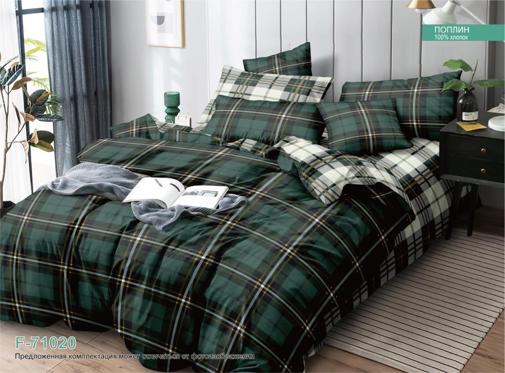 Постельное белье 1,5сп поплин на резинке Орхидея F-71020, наволочки 70*70 - 2шт *1/4