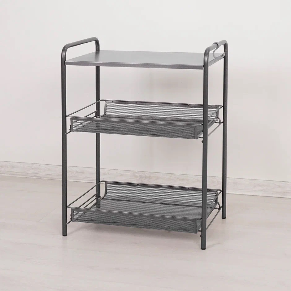 яяяЭтажерка металл. "Ладья33С" 3-х ур.-2 корз.+Полка 610х450х300мм, полим.покр.Граф. Э557ГР *1