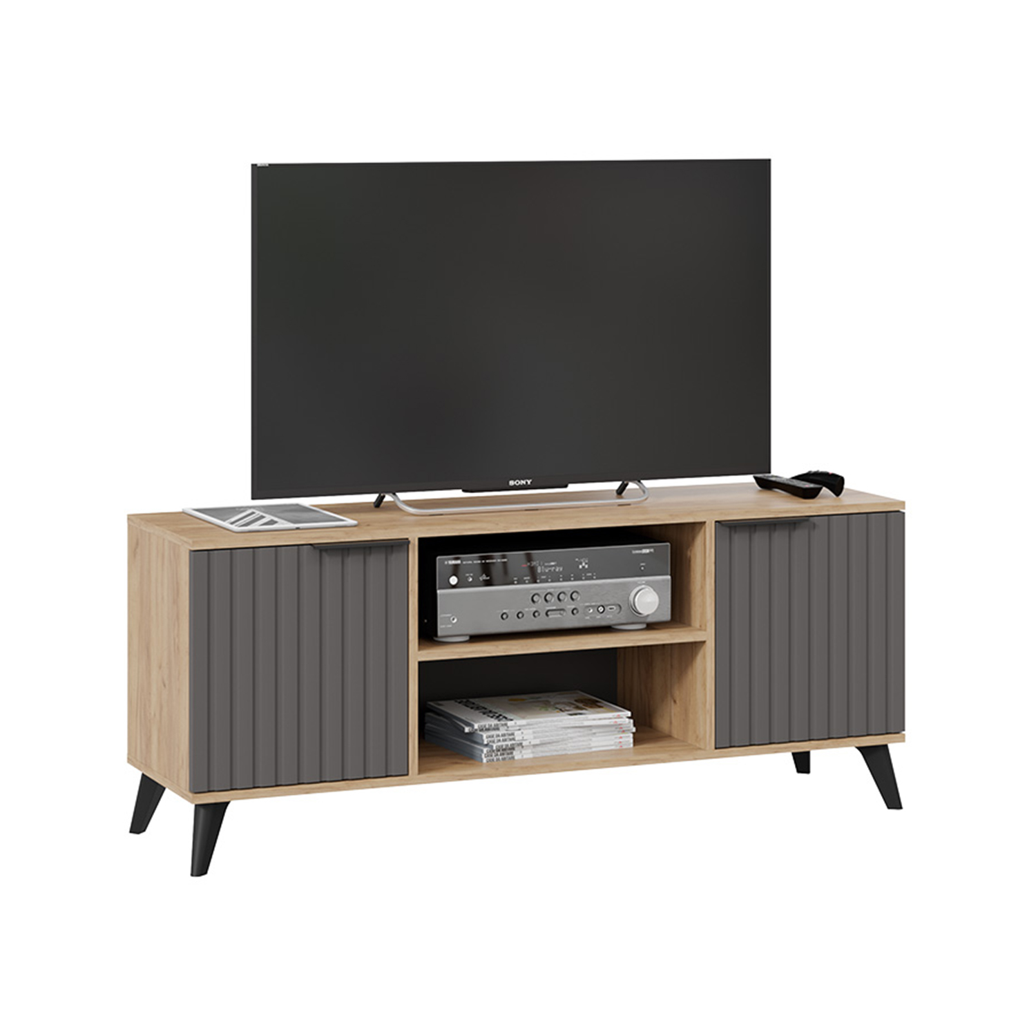 Тумба под ТВ 1335*374*452 Исп.2 Дуб крафт золотой/Белый матовый Хилтон ТриЯ*1