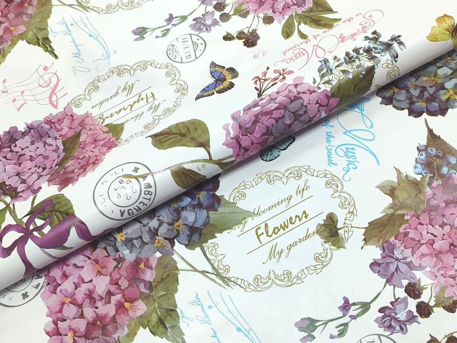Клеенка на нетканой основе "Флорина" "Гортензии" сир. на бел. шир.1,37м GW-GW-21797 "Great Way" *20