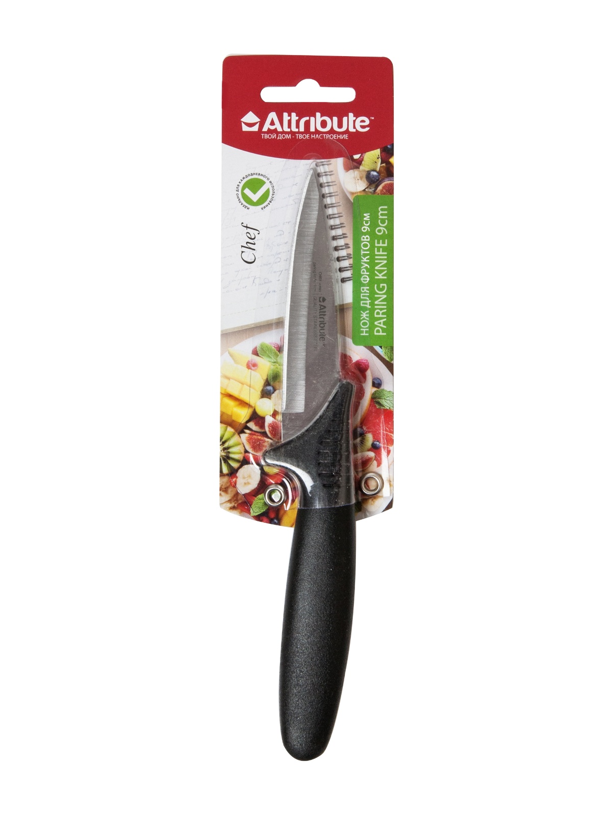 Нож кухонный ATTRIBUTE  пл.р. Chef д/фруктов дл.лезв.9см AKC002 блистер *1/6/72