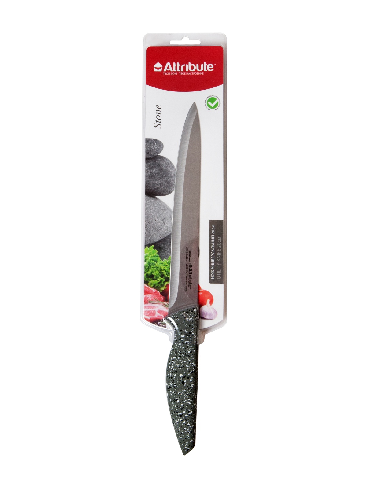 Нож кухонный ATTRIBUTE пл.р. Stone универсальный дл.лезв.20см AKS118 блистер *1/6/36