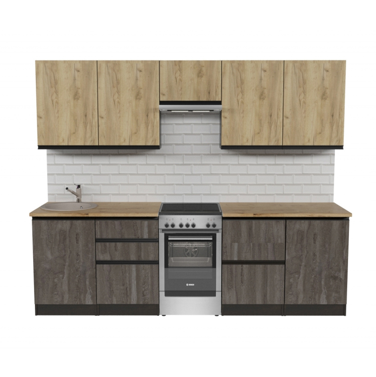 Кухонный гарнитур Адажио мега из ЛДСП в цвете «Дуб золотой» впишется в современный дизайн интерьера. Подойдет как для частного дома, так и для небольшой квартиры. Напольные и подвесные шкафы позволят разместить всю кухонную утварь. Гарнитур состоит из набора шкафов, которые органично комбинируются между собой. Ящики, полки, навесные шкафы, тумбы и пеналы можно менять местами, создавая практичное рабочее пространство.