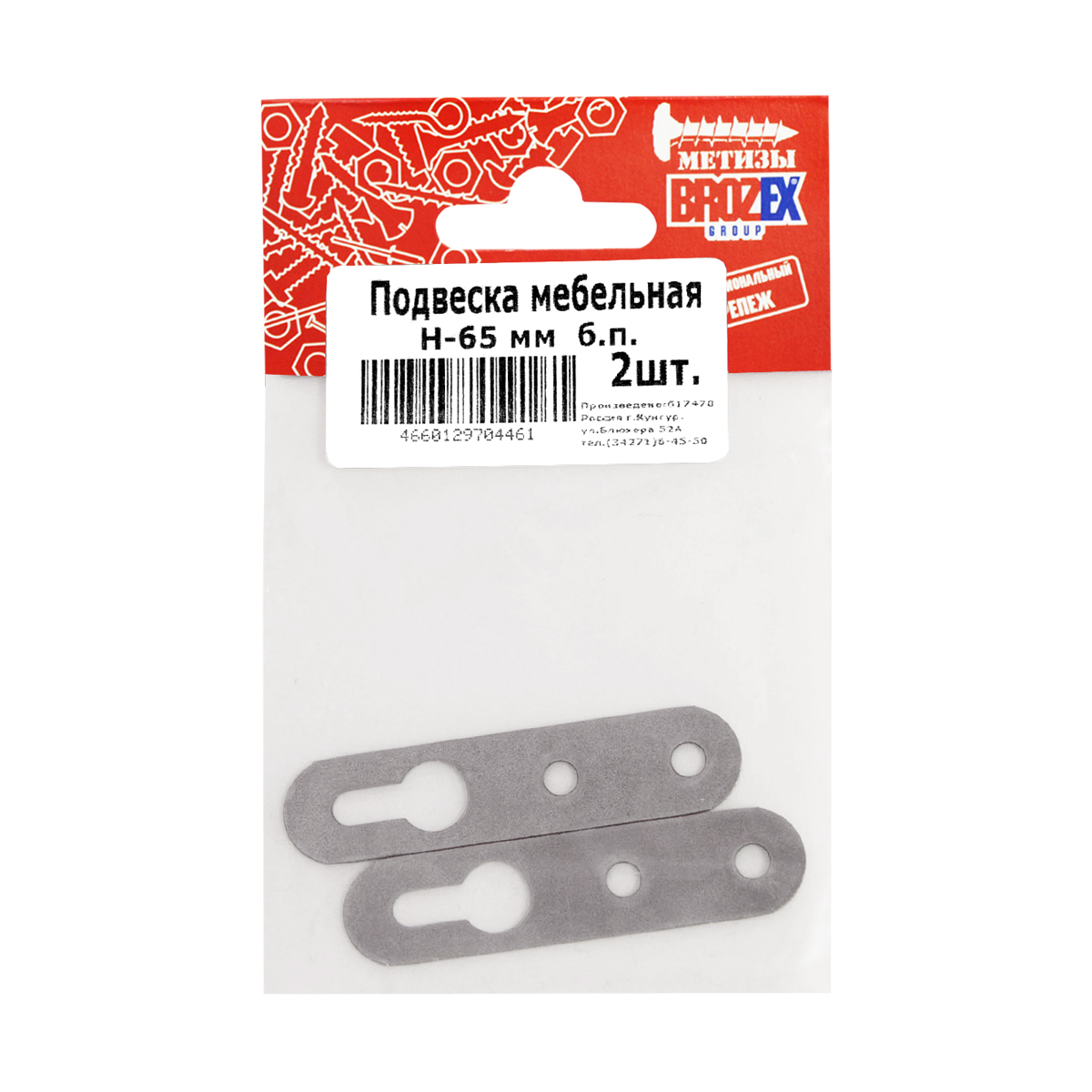 Подвеска мебельная Н-65 без покрытия (комплект 2шт.) ДомоСтрой *10/100