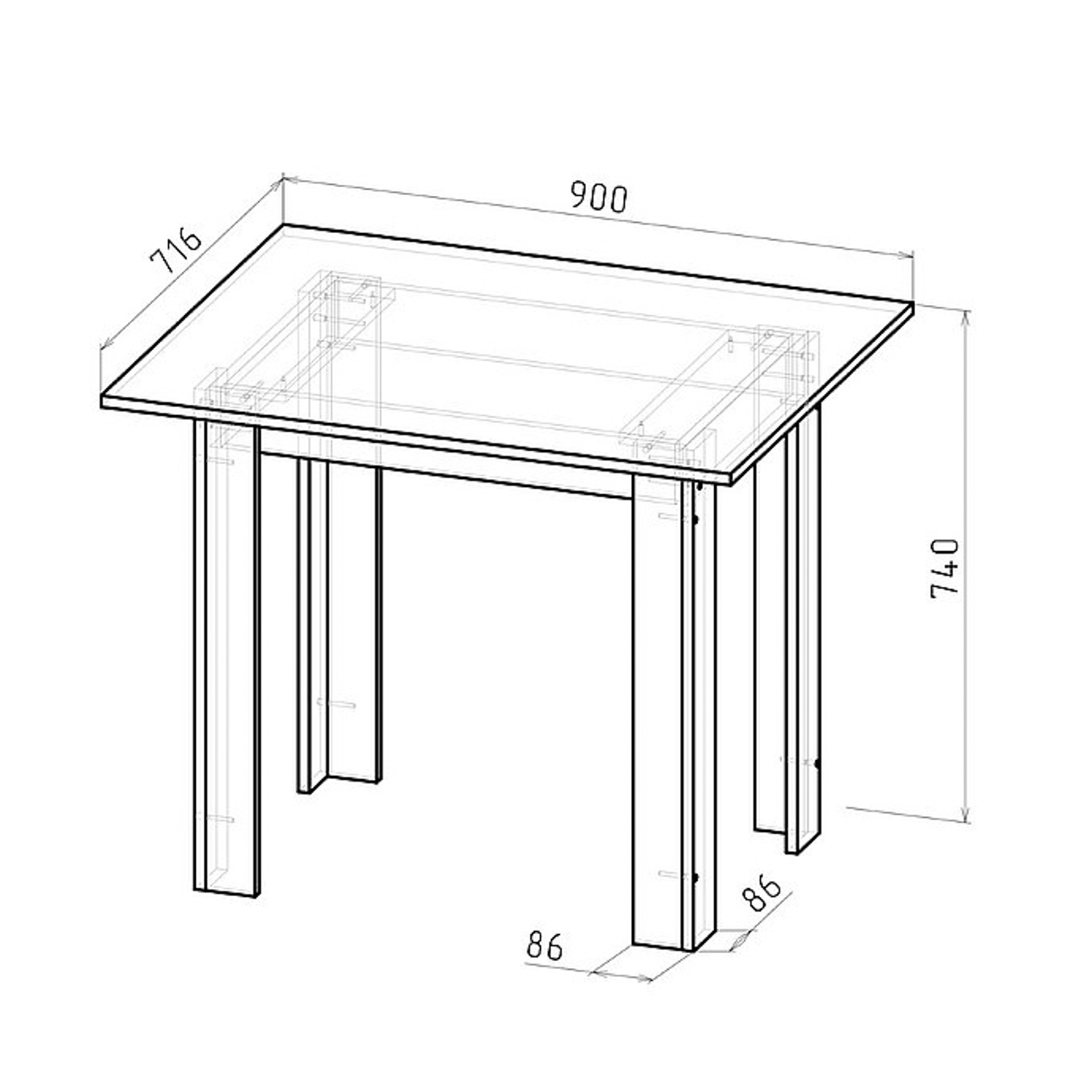 яяяяяяСтол обеденный АКАЦИЯ СО-2 894*690*740мм графит*1