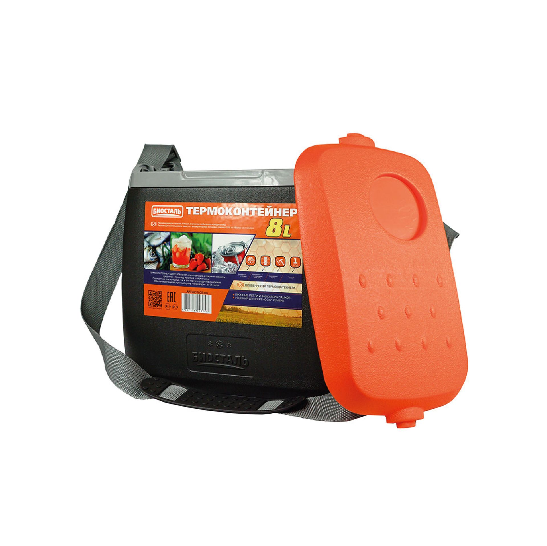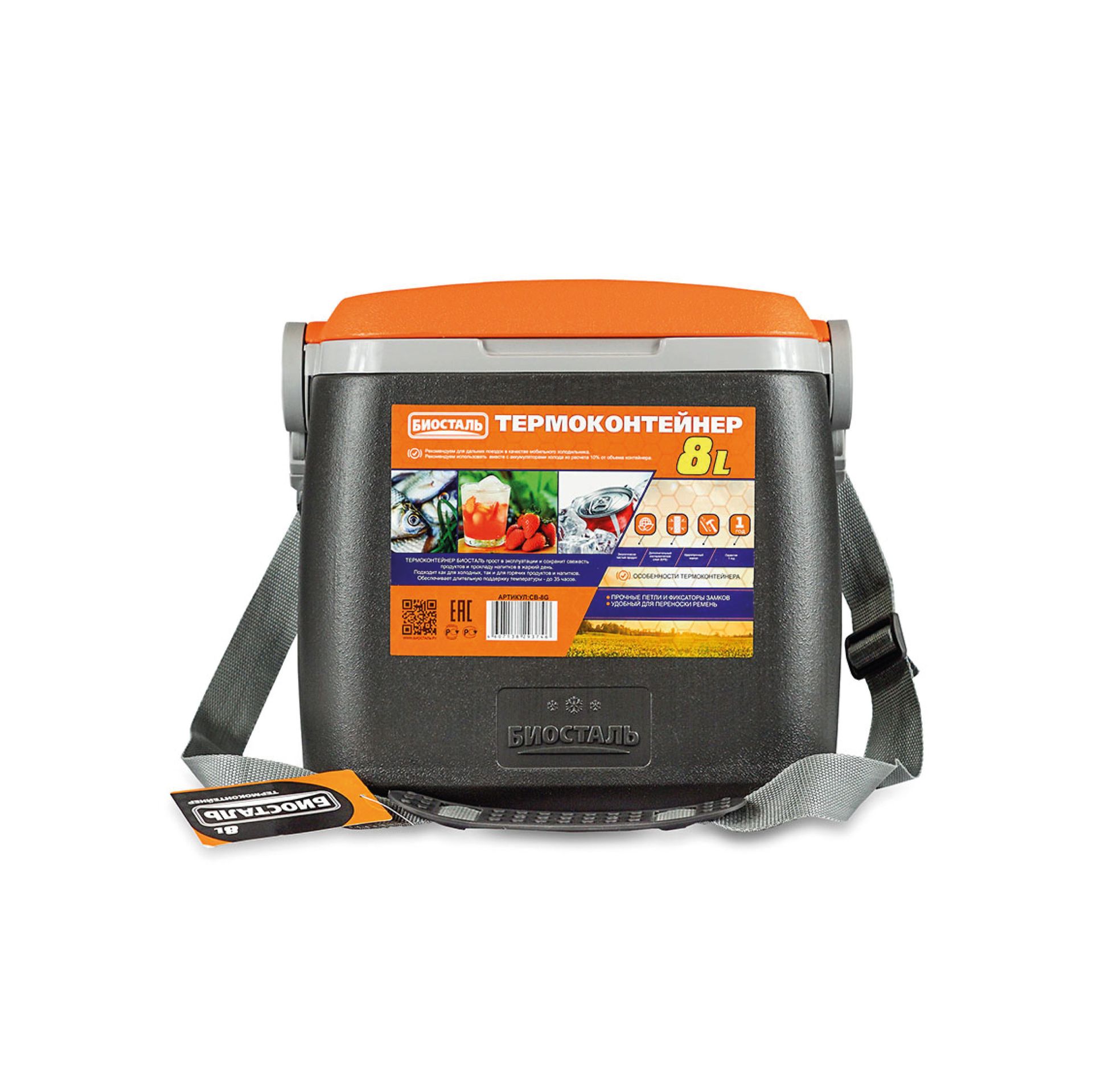 Термоконтейнер пласт. 8,0л, 31,5х19,5х28,5см, с наплечн.ремнём CB-8G-P "Биосталь" *1