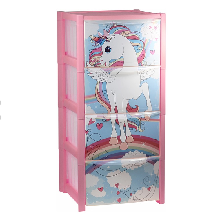 Комод пластм. детский "ДЕКО" "Единорог" 4 ящика 770х380х360мм М2792 ("М-Пластика") *1