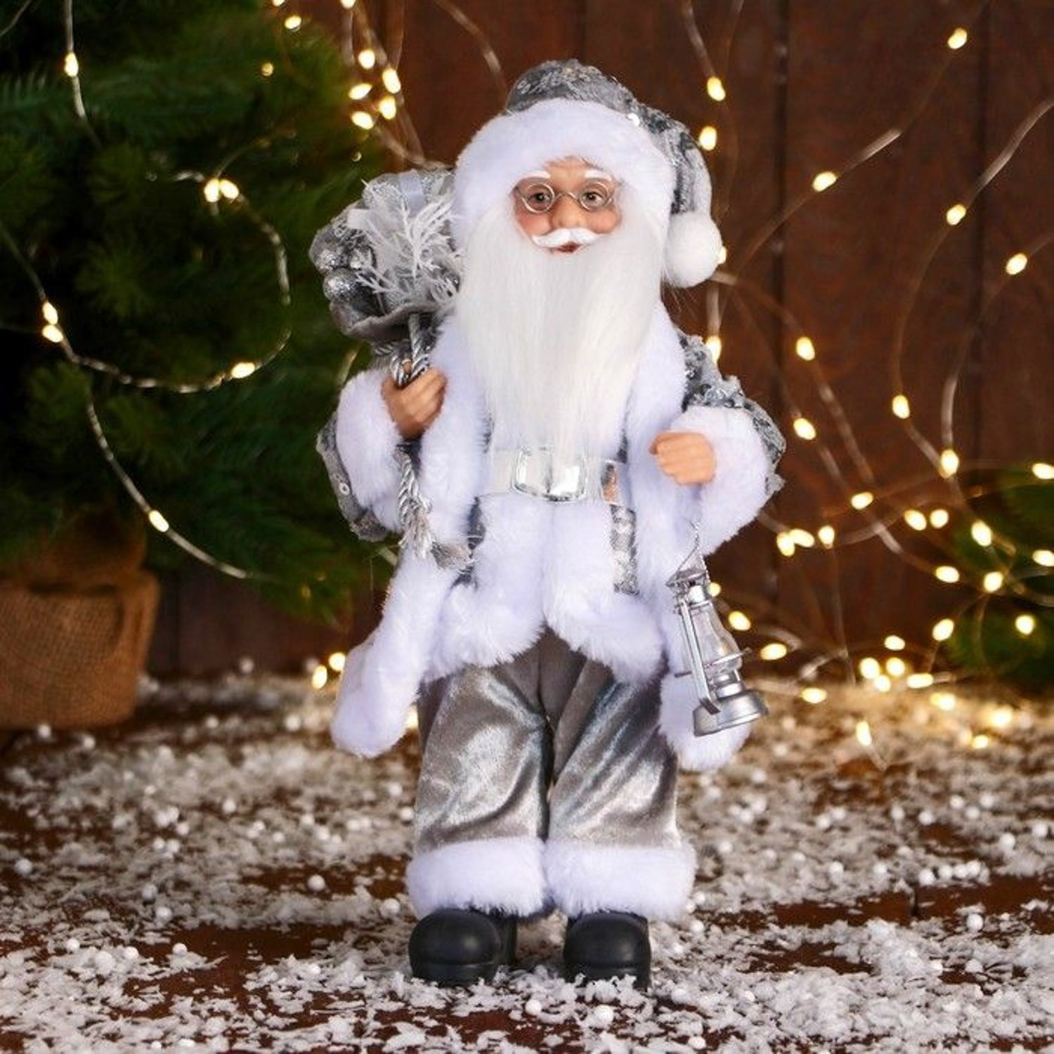 Дед Мороз "В костюме с пайетками и с фонарём" 30 см, серебро 9692591