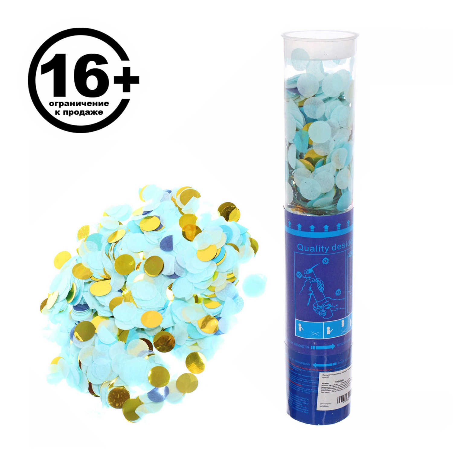 Пневмохлопушка 30 см "Карнавал" конфетти (оттенки синего)
