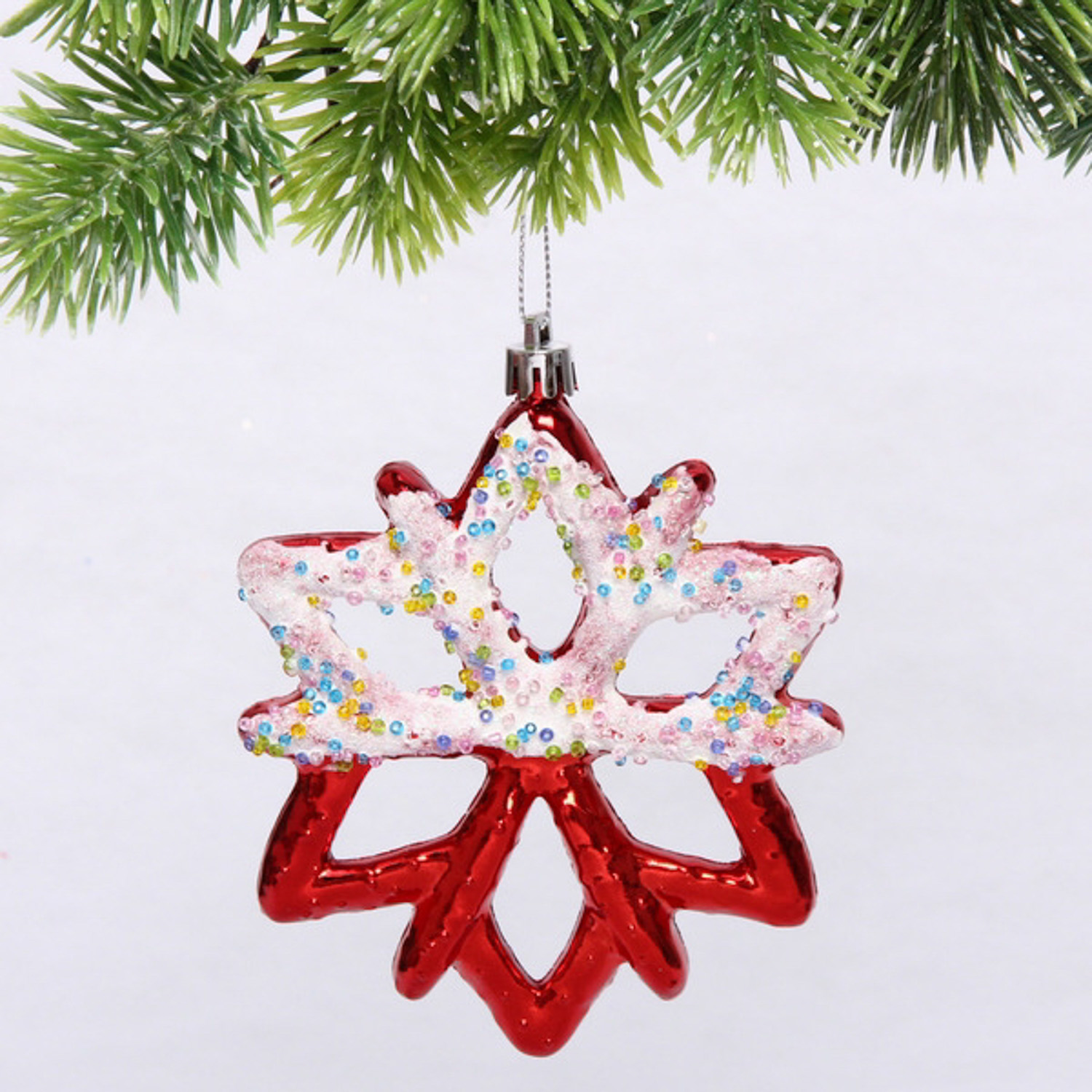 Елочная игрушка "Зимняя снежинка" 10*1*12 см, красный