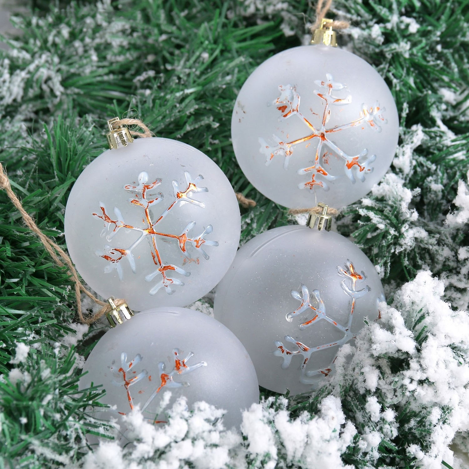 Набор шаров пластик d-8 см, 4 шт "Винтажная снежинка" белый 2137151