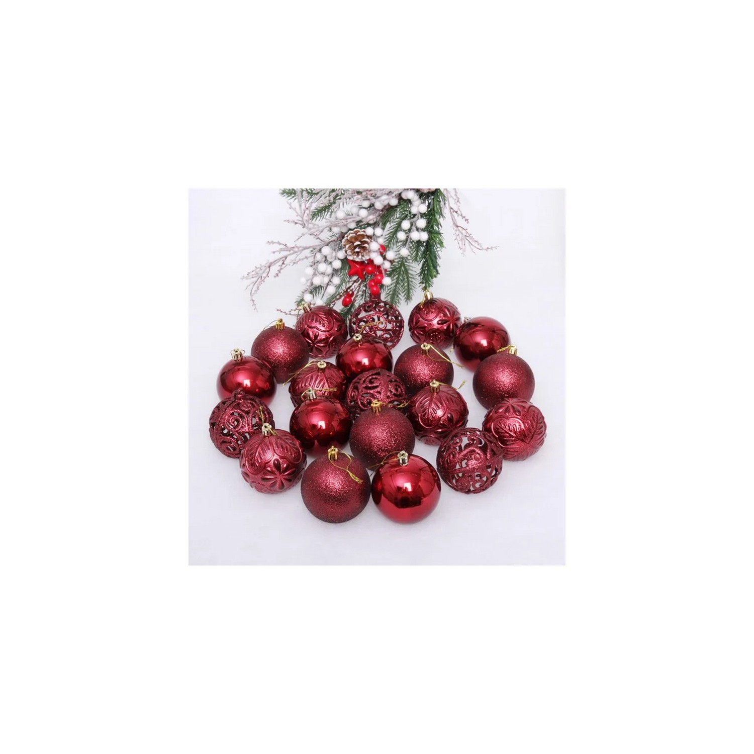 Новогодние шары 8 см (набор 24 шт) "Фактурный микс", темный рубин